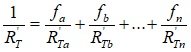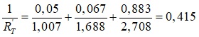 Całkowity opór cieplny RT, komponentu składającego się z warstw cieplnie jednorodnych i niejednorodnych równoległych do powierzchni oblicza się jako średnią arytmetyczną kresu górnego i dolnego całkowitego oporu cieplnego według wzoru:
