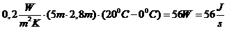 W ciągu 1 sekundy przez ścianę przeniknie 56 J ciepła.