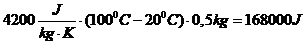 Do ugotowania 0,5 litra wody potrzeba 168 000 J ciepła: