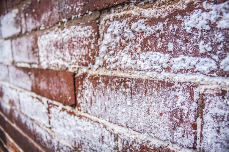 Obecność podciąganej kapilarnie wody wraz z solami jest widoczna na ścianach budowli w postaci białych wykwitów na murach. Podczas sezonowego podwyższania temperatur, woda odparowuje z zasolonych stref w wyniku czego sole krystalizują. Rozbudowywanie się kryształów w strukturze materiału ściany rozsadza pory materiałów powodując ich kruszenie. Następnie podczas wilgotniejszych miesięcy kryształki soli ulegają rozpuszczenia w wodzie i proces się powtarza.