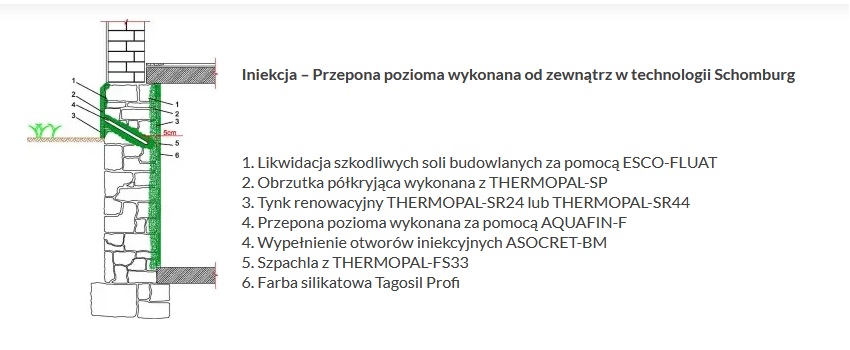 Biorąc pod uwagę przeprowadzoną analizę zawilgocenia i stanu obiektu należy wybrać sposób zabezpieczenia lub naprawy izolacji. Stan techniczny obiektu, odległość od sąsiednich budynków, materiał z jakiego wykonane są przegrody oraz możliwości i doświadczenie wykonawcy determinują sposób wykonania izolacji poziomej i pionowej [4].